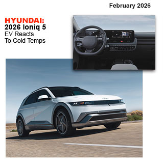There are so many things to like about Hyundai’s all-electric Ioniq 5. The two-row SUV is deceptively roomy, so there’s ample space for cargo (27.2 cubic feet behind second row seating and 59.3 cubic feet with rear 60/40 split seat folded). Two 12.3-inch displays — one for the driver’s information cluster and another for the center infotainment touchscreen — are easy to read in sunny, cloudy, and dark conditions as is the windshield-projected Head-Up Display (HUD) with augmented reality mode. And the center console, capable of sliding back and forth 5.5 inches, is a nifty interior feature. On the downside, the Ioniq 5’s lithium-ion polymer energy pack isn’t immune from battery drains in sub-freezing temperatures.